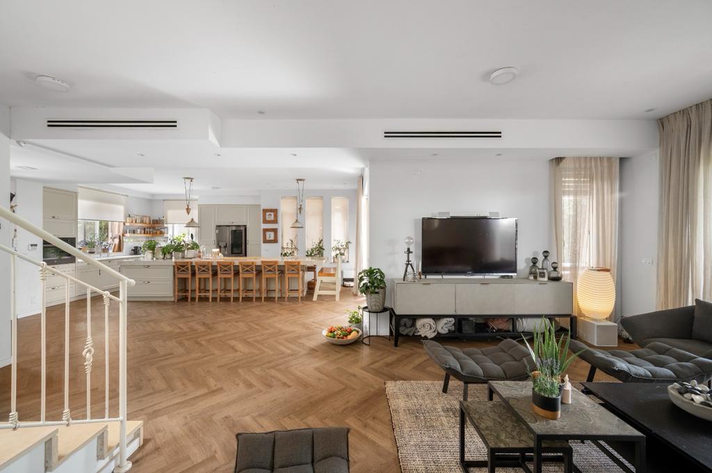 מטבח גדול ומפנק לכל אוהבי האירוח, סלון גדול עם מפתחים רחבים ורצפת עץ פישבון.
